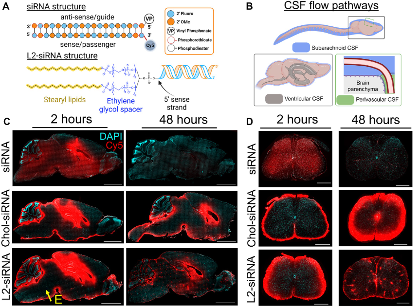 Elucidating brain transport pathways and cell type-dependent gene silencing of a durable lipid–siRNA conjugate administered into cerebrospinal fluid